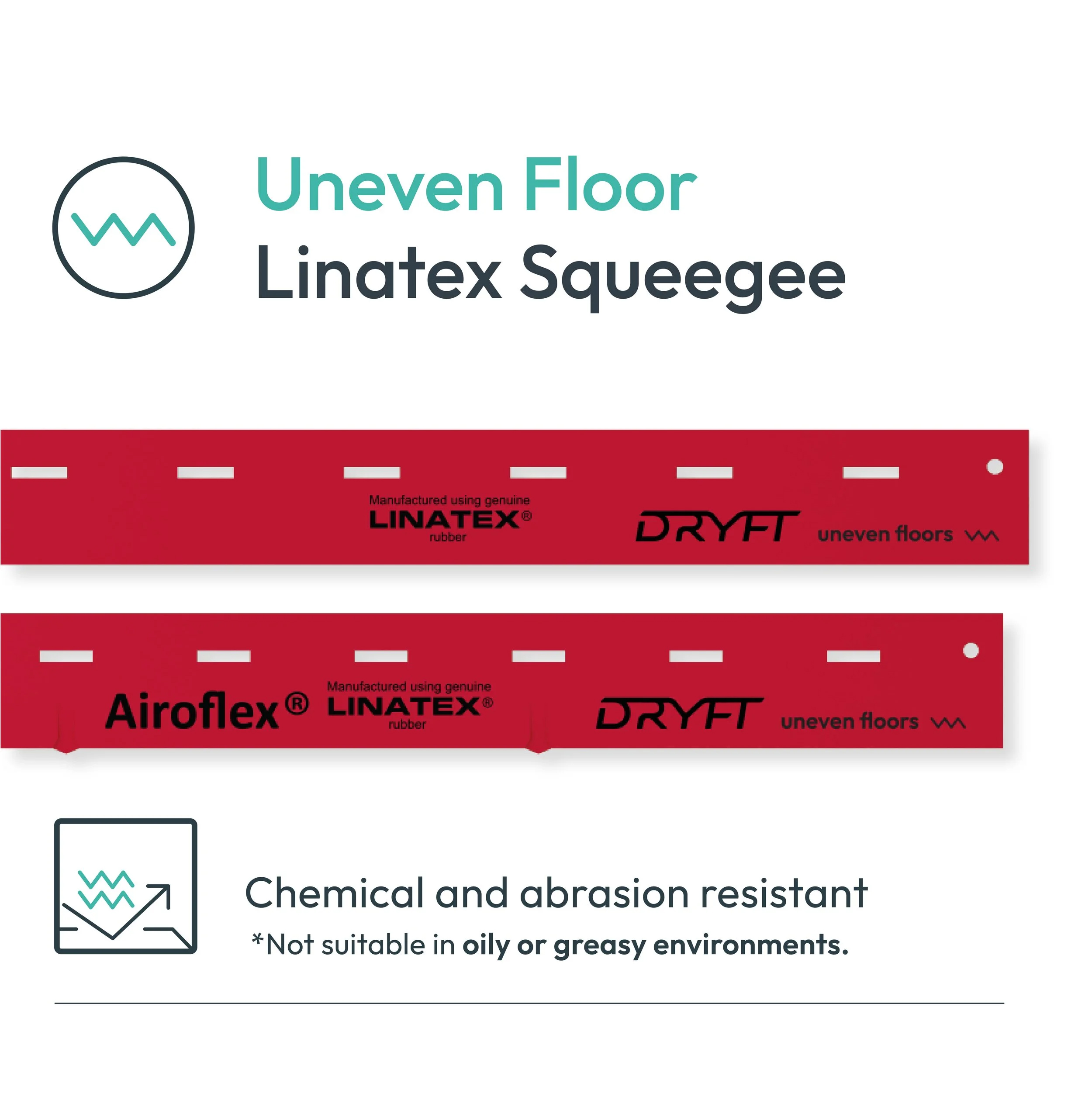 The DRYFT Uneven Floor Squeegee is purpose-built to handle challenging surfaces with deep texture and heavy grout lines.